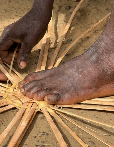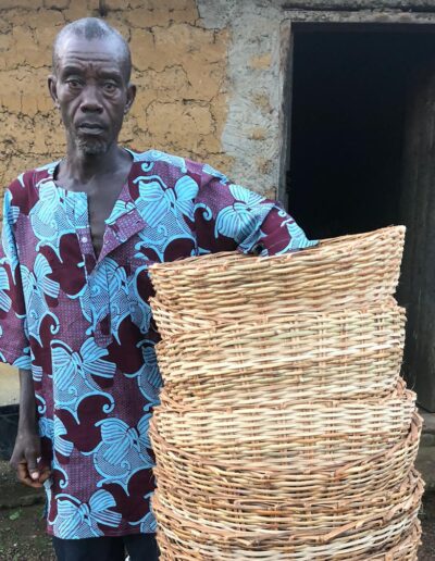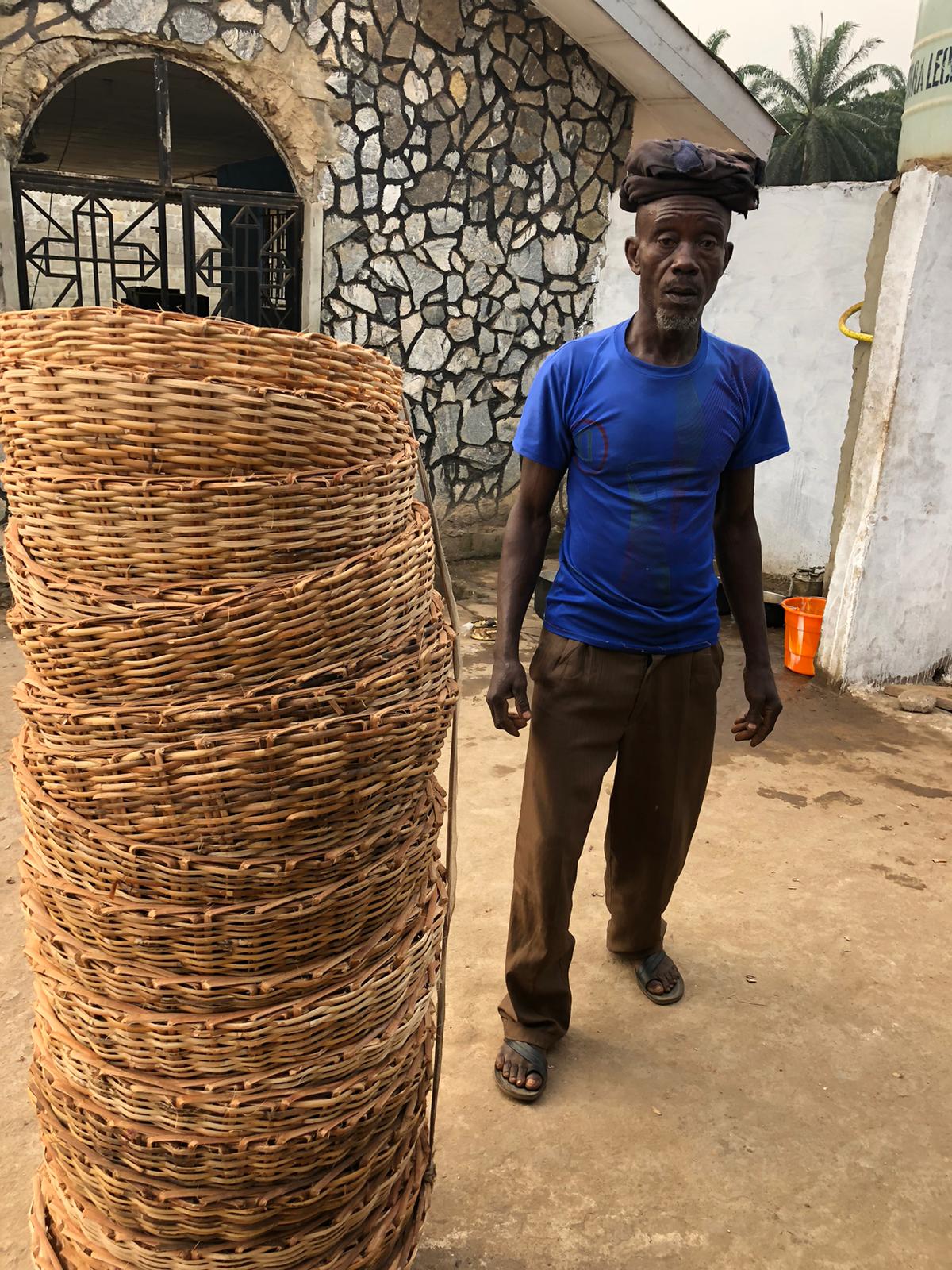 De manden worden onder andere door deze man gemaakt, een inwoner van het dorp Limba. Doordat hij de manden kan verkopen, kan hij zichzelf maar ook anderen in het levensonderhoud voorzien. Wanneer u een mand koopt, helpt u het dorp om zelfstandiger te worden en normaal te kunnen leven.